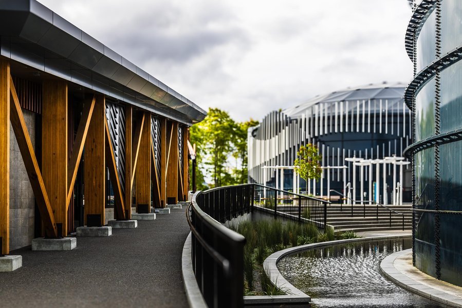 At home in New Zealand, Insol has recently completed work on the Koawa Studios building at the University of Canterbury, which opened in December. “This is a state-of-the-art 1,400sqm building with a striking façade made from over 700 triangular perforated metal leaves,” Shane says. “It will house advanced post-production facilities, editing suites, production offices, a screening room, and a 440sqm sound stage. A landmark around the campus for the future, the façade has been tested in Insol’s wind tunnel to ensure it doesn’t rattle, vibrate or whistle in any wind direction, including Christchurch’s notorious nor-wester. It is finished with a custom powder coat and a beautiful niho taniwha perforation pattern designed by Hori Te Ariki Mataki and the Ariki Creative whānau. The finished result is a true testimony of the collaboration between Insol, the contractor Southbase, and the architect Ignite.”
